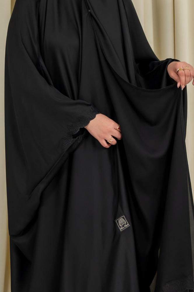 تطريز أسود ناعم على الأكمام وأسفل العباية