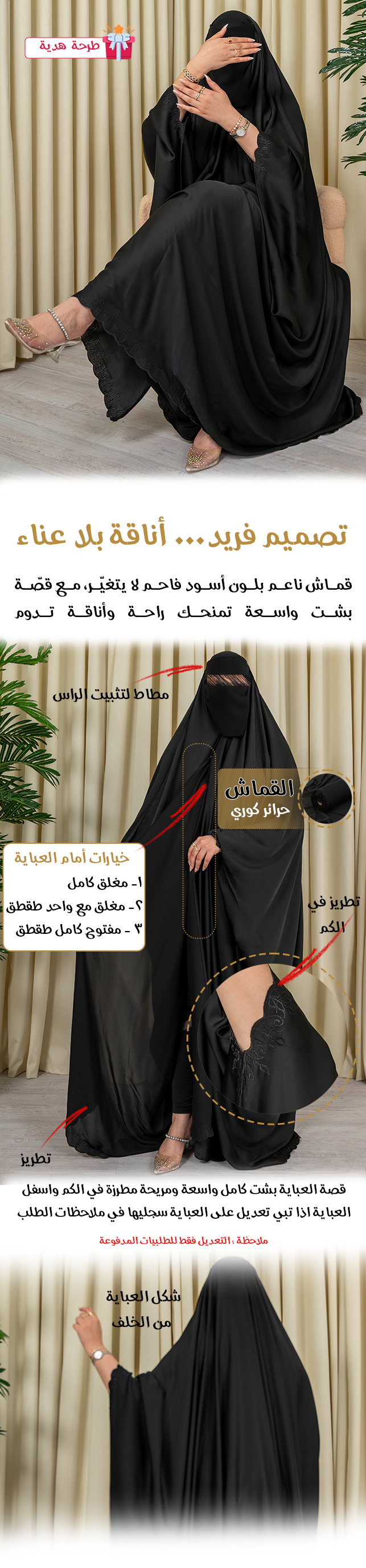 1452 | عباية راس بشت كامل مع طرحة هدية