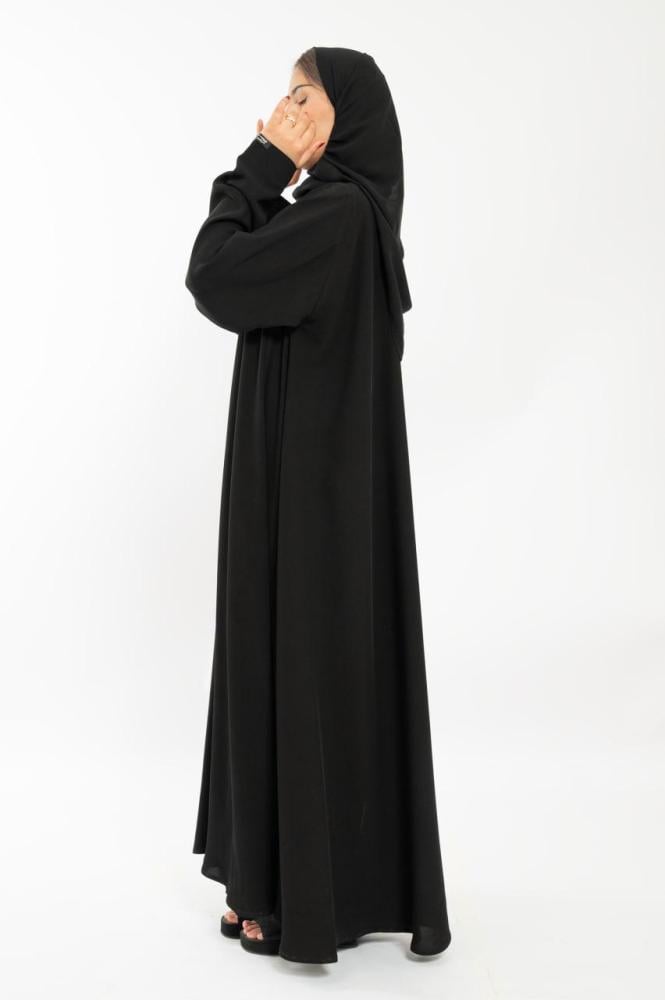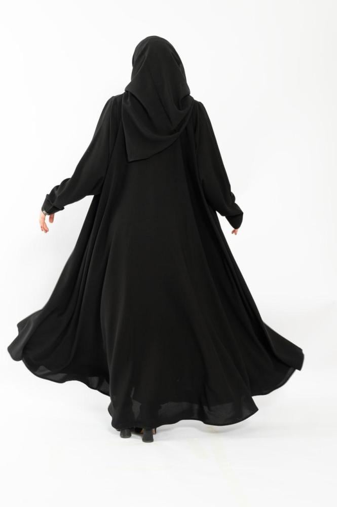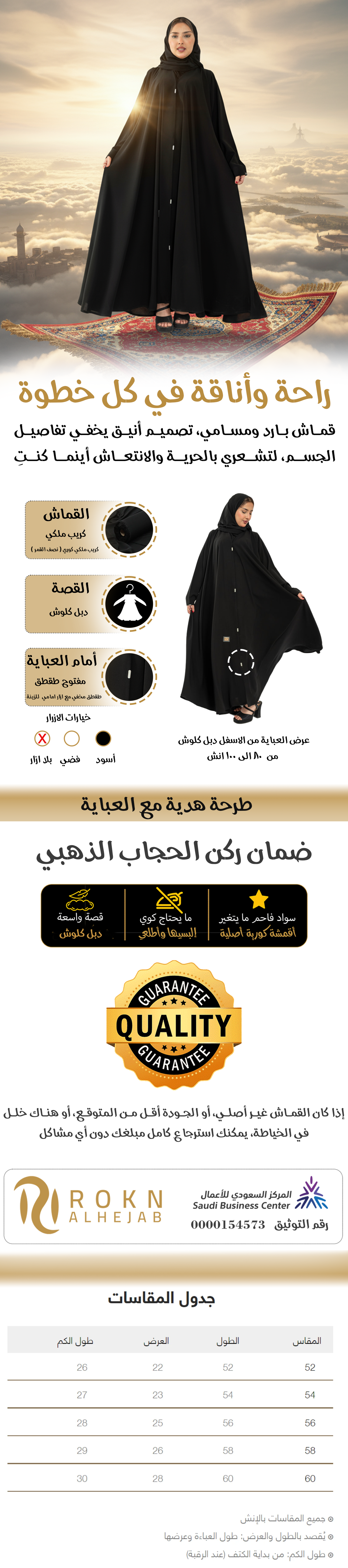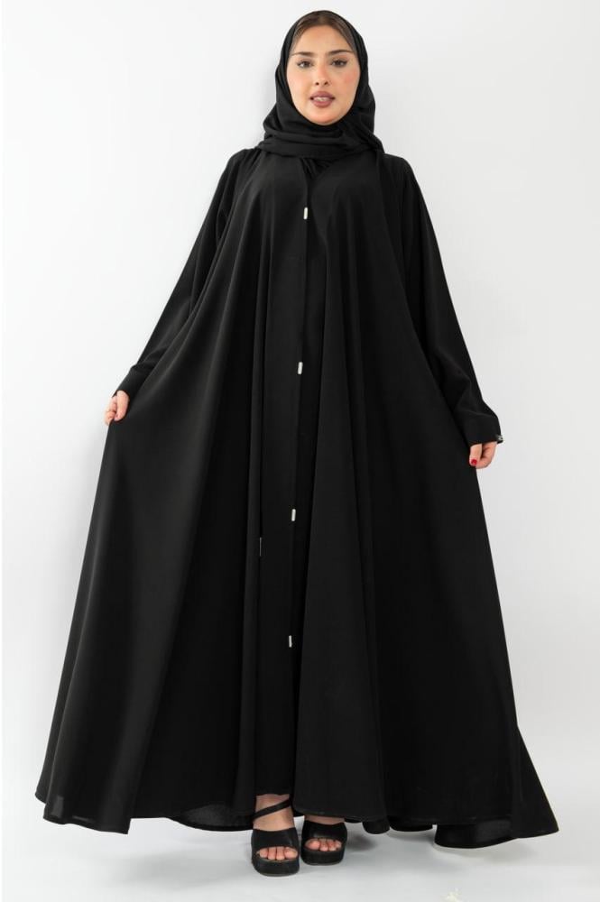 ✔ عباية دبل كلوش كريب ملكي تمنحك مظهراً أنيقاً ومحتشماً مع قصة واسعة تنساب برقي لتضفي لمسة ملكية على إطلالتك.
