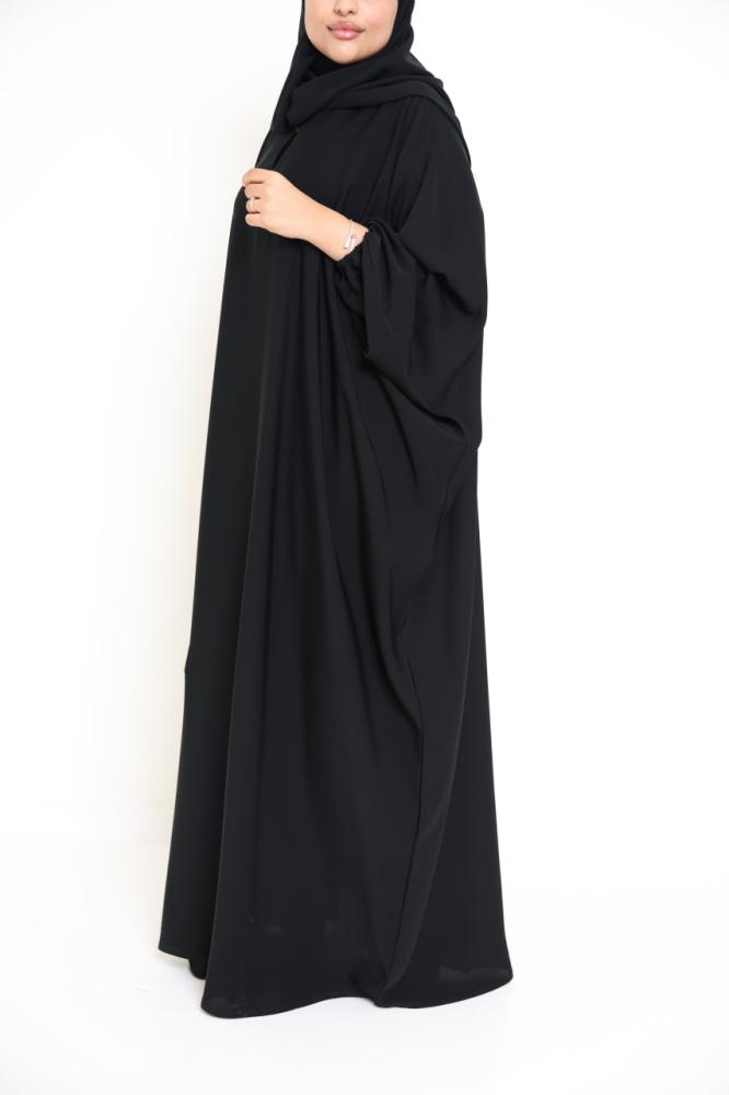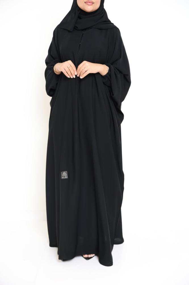 عباية عملية فاخرة تجمع بين الانسيابية والراحة، بتصميم بشت فراشة واسع يناسب كل الأجسام ويمنحك إطلالة راقية بدون مجهود.