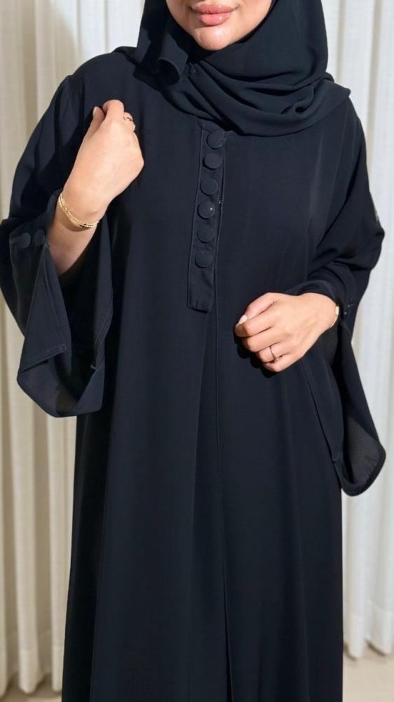 عباية أنيقة تجمع بين البساطة والتفاصيل الفاخرة.