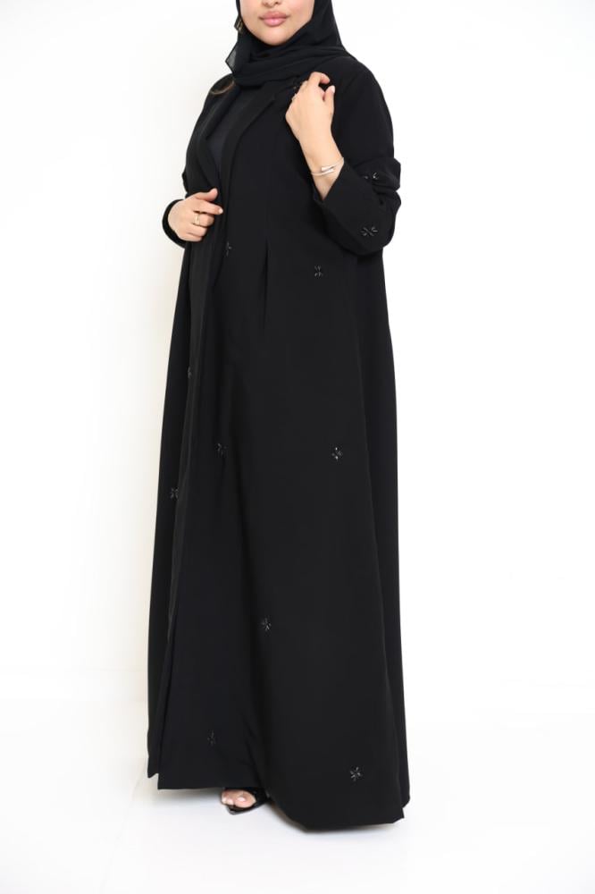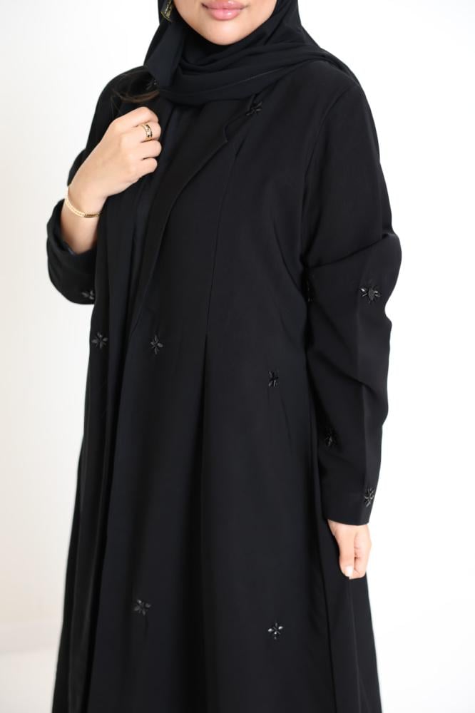 3456 | عباية بليزر سوداء مطرزة مبطنة من الداخل